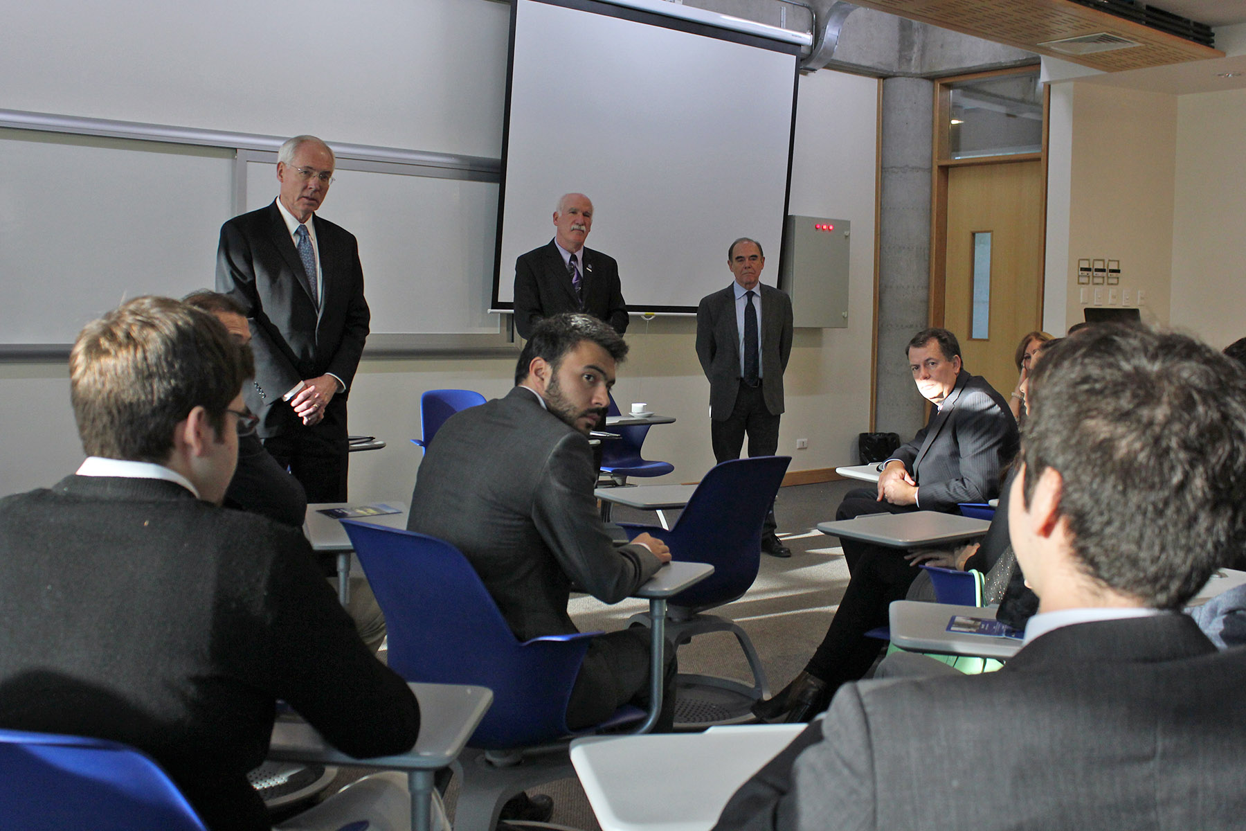 En la reunión final, los pares evaluadores Lawrence Rose, Decano de California State University; Finley Graves, Decano de University of North Texas; y Michael Bryant, de la ESC Clermont Ferrand de Francia; leyeron el informe de la visita, en que a los programas de Economía y Negocios de la Facultad en que manifestaron su satisfacción y buenas impresiones con el proceso vivido, destacaron la alta calidad de la Facultad y el compromiso con su misión de toda la comunidad (estudiantes, profesores, personal de colaboración).